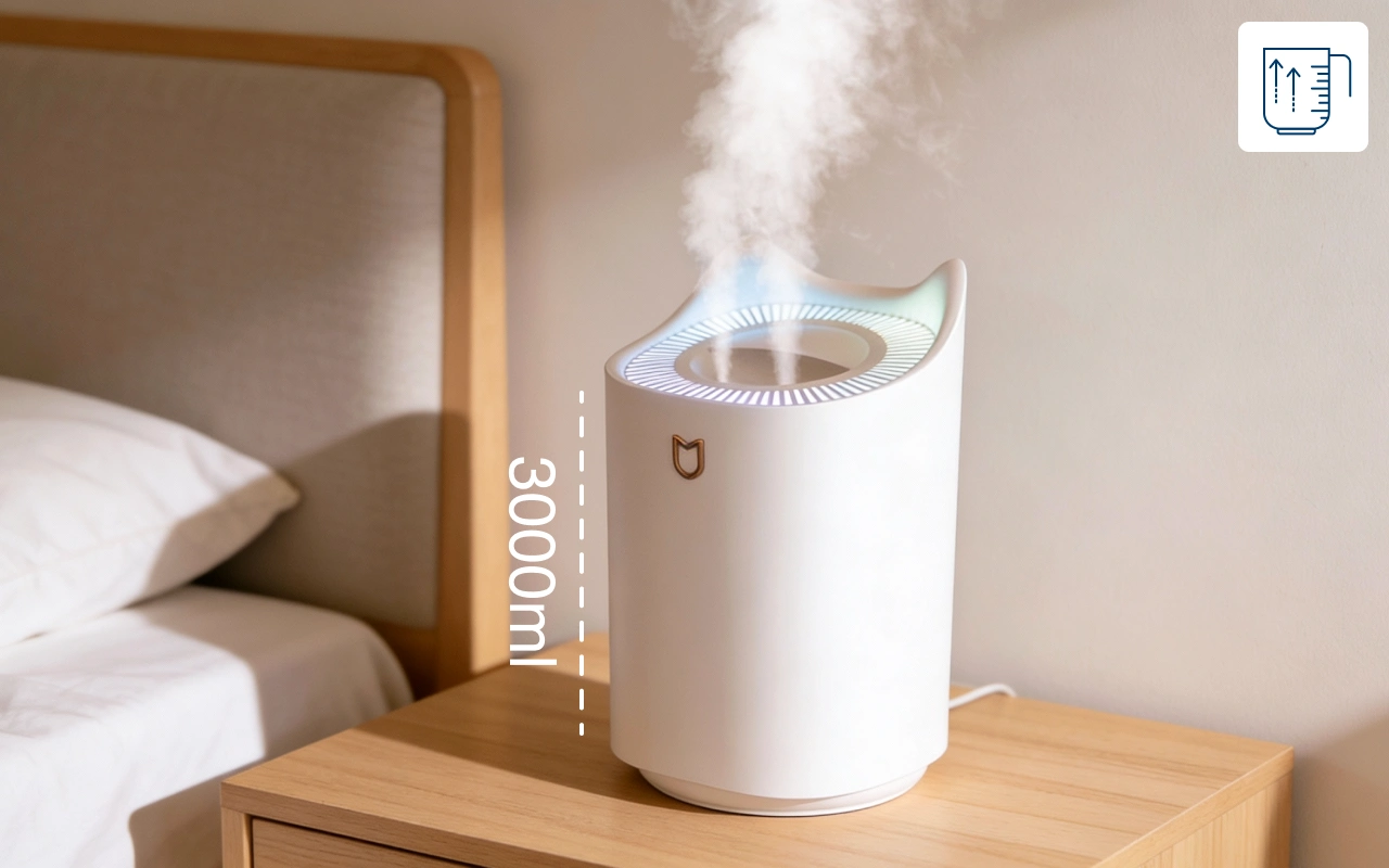 Grâce à un volume de 3000 ml, cet appareil ne nécessite pas de remplissage fréquent.