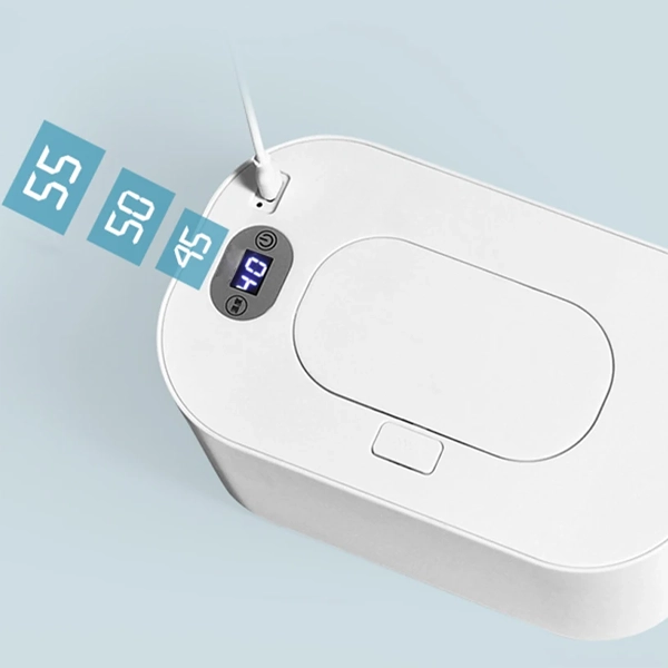 Notre chauffe-lingettes présente un design simple sans réglages compliqués. Il suffit de placer la boîte de lingettes à l'intérieur, et c'est prêt.