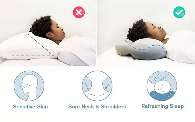Notre oreiller en forme de nuage offre un soutien optimal pour votre tête, votre cou et vos épaules. Cet alignement maintient votre colonne vertébrale supérieure en position neutre. Il aide à atténuer la raideur musculaire dans la région du cou.