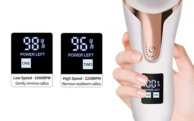 Cet appareil vous permet de contrôler l'intensité du traitement. Utilisez le mode basse vitesse pour une exfoliation douce ou le mode haute vitesse pour un retrait approfondi des callosités.